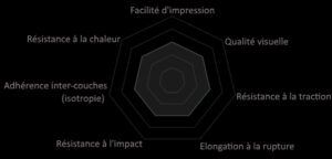 Il existe plusieurs type de filament différents, chaque filament à ses propriétés en voici un résumé via un graphique: