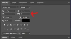 Désormais nous allons pouvoir utiliser le fameux outil! Dans la case de droite (tout en ayant les deux lettres sélectionnées) nous allons changer le zéro « 0 » par « -60 » par exemple n’oublie pas le – devant le 60 sinon tu va agrandir l’espace entre les lettres!