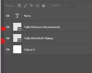 Nous voila sur Photoshop, le cadre rouge représente la taille MAXIMUM du plateau à ne surtout pas dépasser donc 30x30cm.