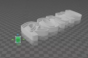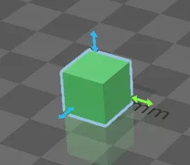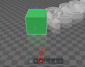 Nous voici avec un cube vert de 40x40x40mm, comment je le sais? Regarde en bas au milieu et clique sur l’icone « Mise à l’échelle ».