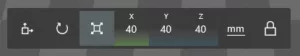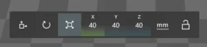 Pour ce simple cube laissons le cadenas fermer, on va clique sur la case « X 40 » et y entrer le chiffre 10, une fois fais notre cube retréci et il fait désormais 10x10x10mm.