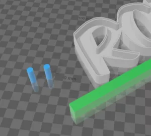 On ajoute deux cylindres (même chose que pour le cube) et on leur donne une taille de 6.5mm de circonférence et une hauteur à peu prêt 2cm fera l’affaire, ça doit ressembler à ça: